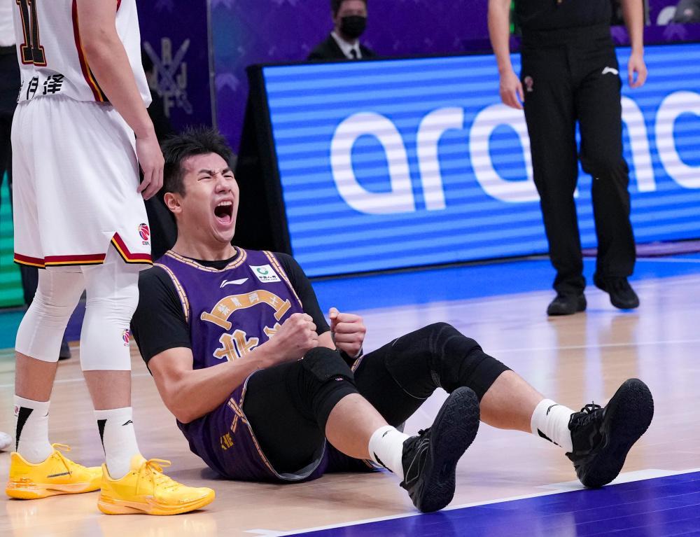 1月26日,北京控股队球员邹雨宸在比赛中庆祝得分。新华社记者 雒圆 摄